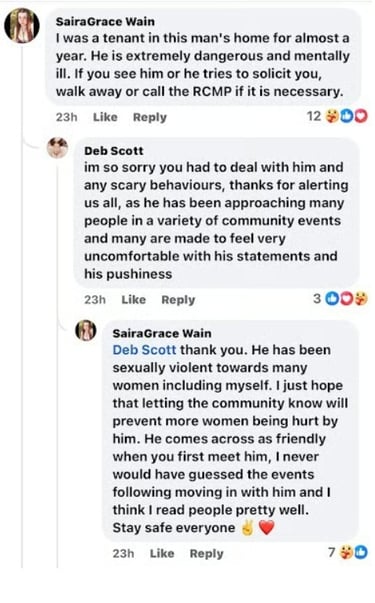 This is the same woman, Saira Grace Wain, who told me the last time I spoke to her at the golf course for an open mike night, that I should "leave the island." Saira believes she has been so effective in poisoning the community of Gabriola Island against me that my only option now is to flee.