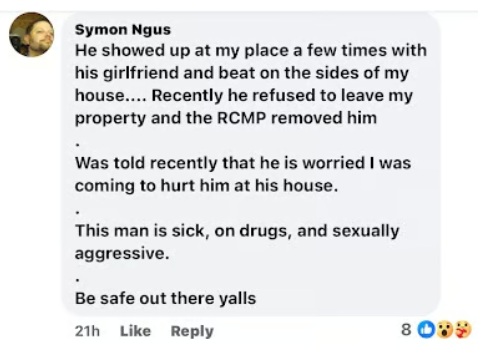 I found out pretty quickly that Saira had decided, on her own initiative, to slander, malign, spread rumors, falsehoods and outright lies about me. Going so far as to write a letter proclaiming I was a sexual predator, a danger to women and posted it outside the local supermarket, Nester's.